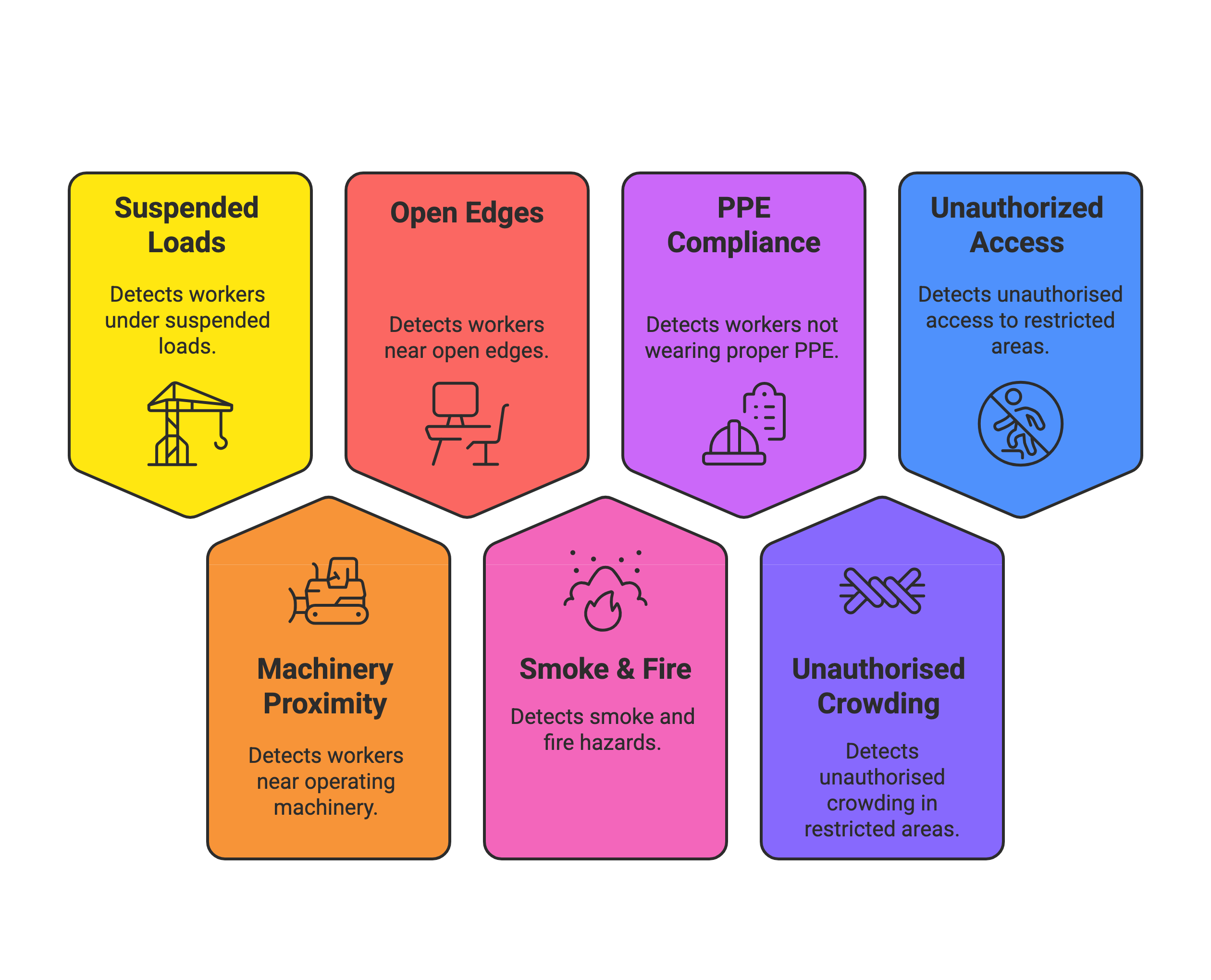We have more than 30+ AI models trained on critical safety scenarios common across construction projects: